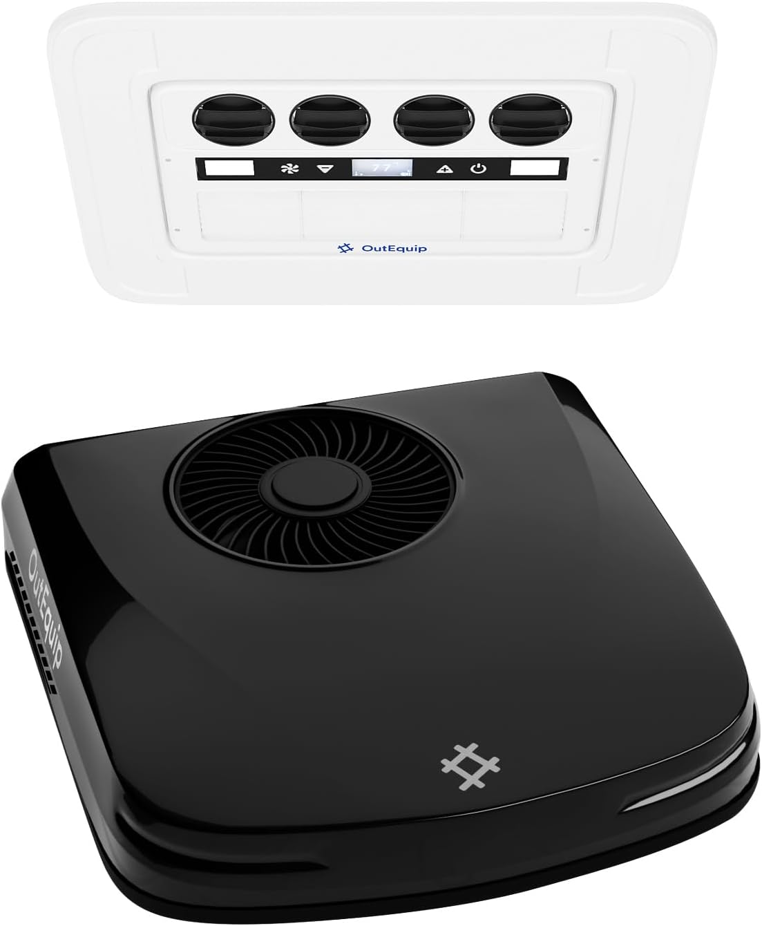 12V RV Rooftop Air Conditioner, 10,000 BTU Low Profile DC Air Conditioner – Quiet Battery Powered AC Unit for RV, Van, Camper, Truck, Trailer, Boat – Black Shell Design (No Heater)